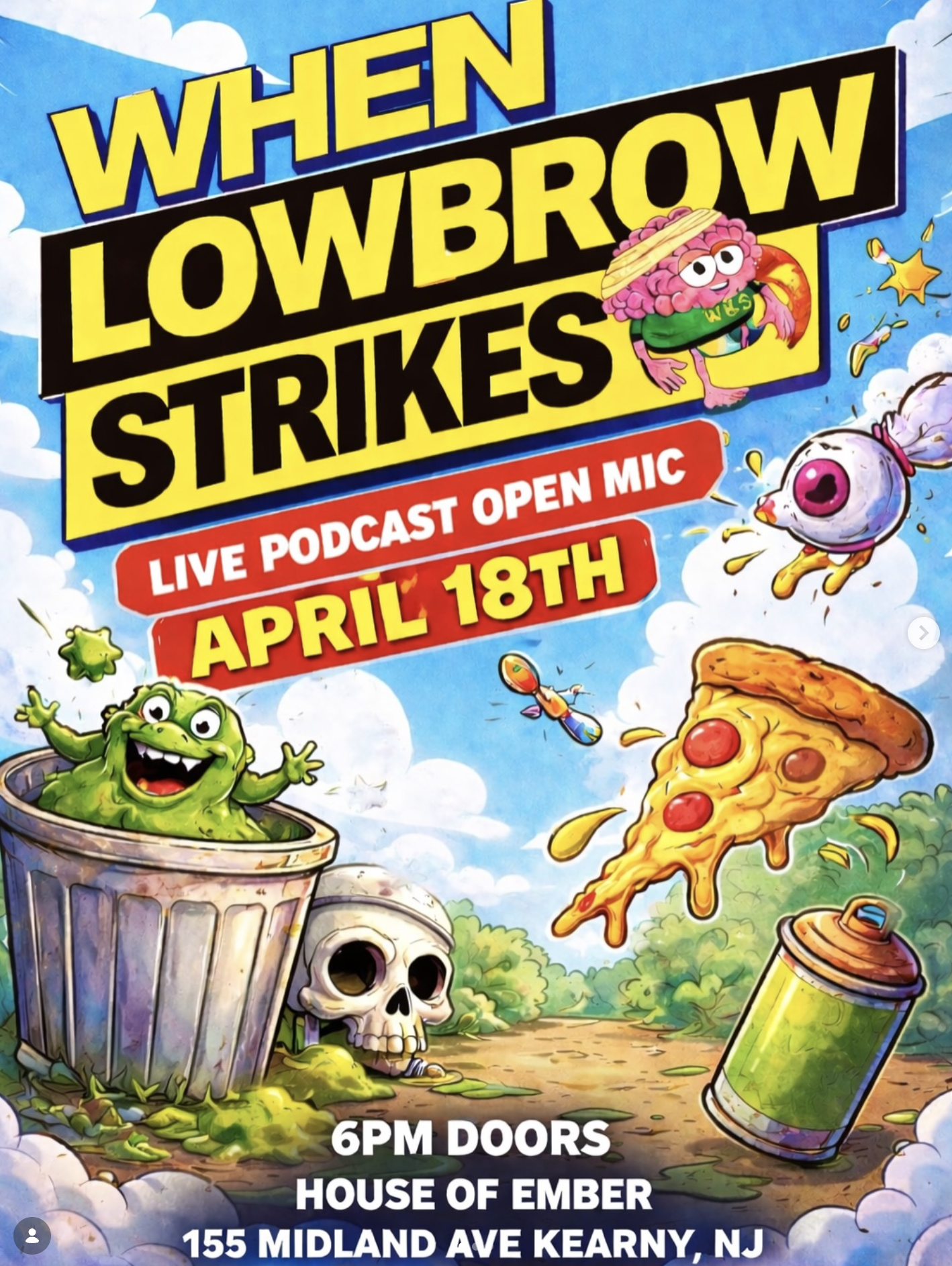 WHEN LOWBROW STRIKES IS A LIVE PODCAST TAPING THROWING COMEDIANS INTO THE DEEP END WITH RANDOM TOPICS PULLED LIVE ON STAGE.
